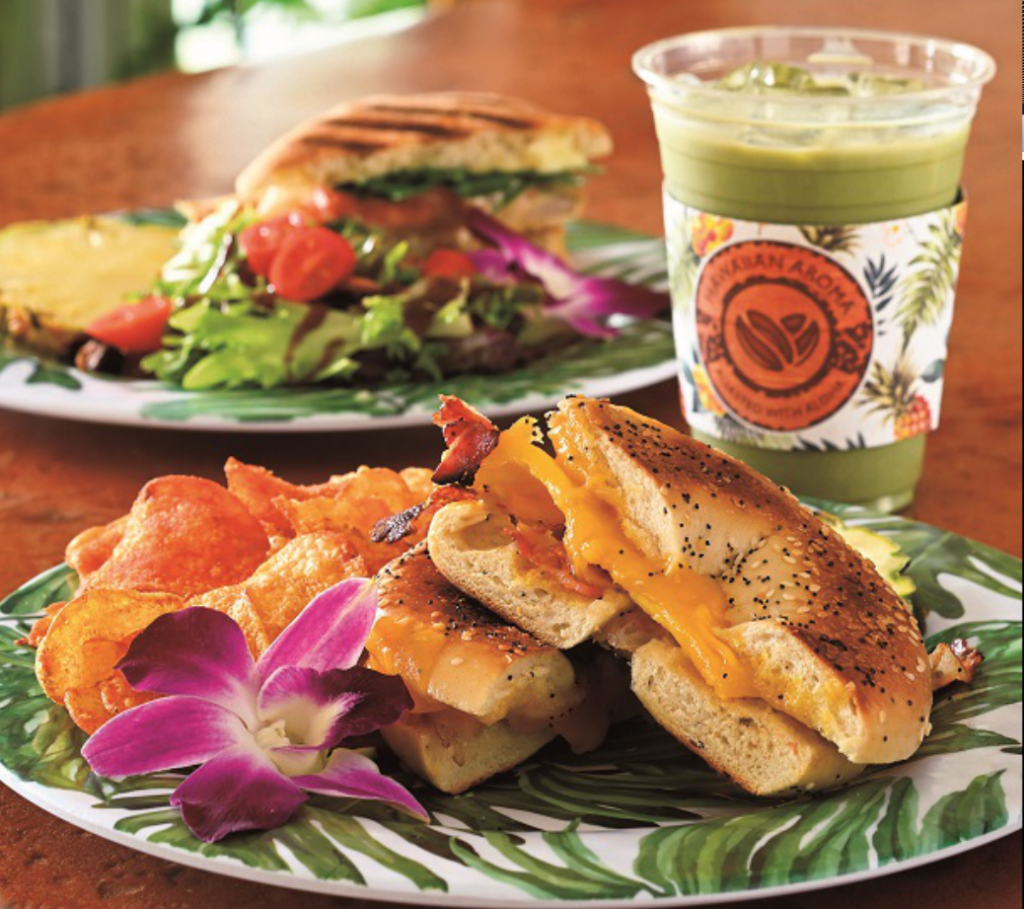 宿泊プランで「朝食付き」は非常にありがたい特典です。しかも起き抜けにサッと行けるホテル内のレストランならなおさら。ハワイの様々な飲食店やショップを調べ尽くしているJCBが今回の優待企画立案でコラボしたのが、ビーチコマーのロビー階にある「アロマカフェ」。白羽の矢を立てた理由は「ホテル内にあるから」だけではなく、こちらのカフェ、エスプレッソを基本としたイタリアンコーヒーのクオリティとおいしさには定評があって、弊誌でも41号で取り上げた、ワイキキの名物店なのです。オーナーは「母がイタリア人で子供の頃からイタリアン珈琲とともに育った」という方。毎朝家中に漂う香り(アロマ)がイタリアン珈琲の芳香だったとか。だから店名がアロマカフェ。舌が肥えた、品質重視のオーナーが作り出すパニーニやワッフルなどの朝食メニューは以前から評判で、今回のJCB企画ではなんとメイン5種類・軽朝食3種類の計8種類から選べるというもの。毎朝違うメニューにトライしたいものです。